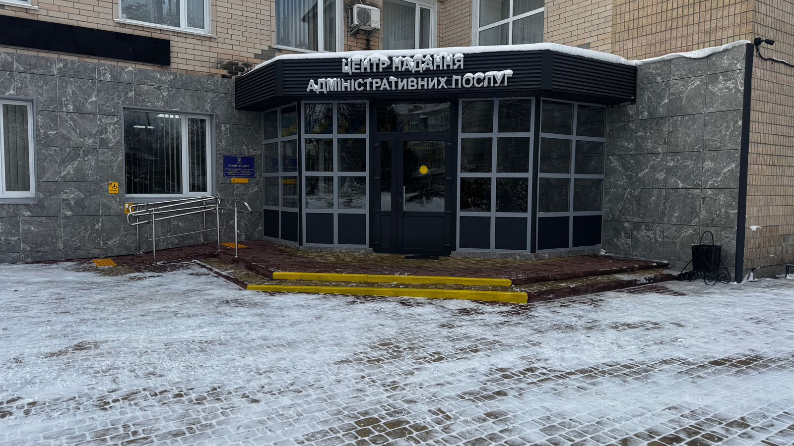 Стійки прийому адаптовані для відвідувачів, які пересуваються з палицями, милицями або на кріслах колісних. На вході встановлено світловий вказівник ЦНАП, у приміщенні — стійку рецепції та лайт-бокси з підсвіткою.