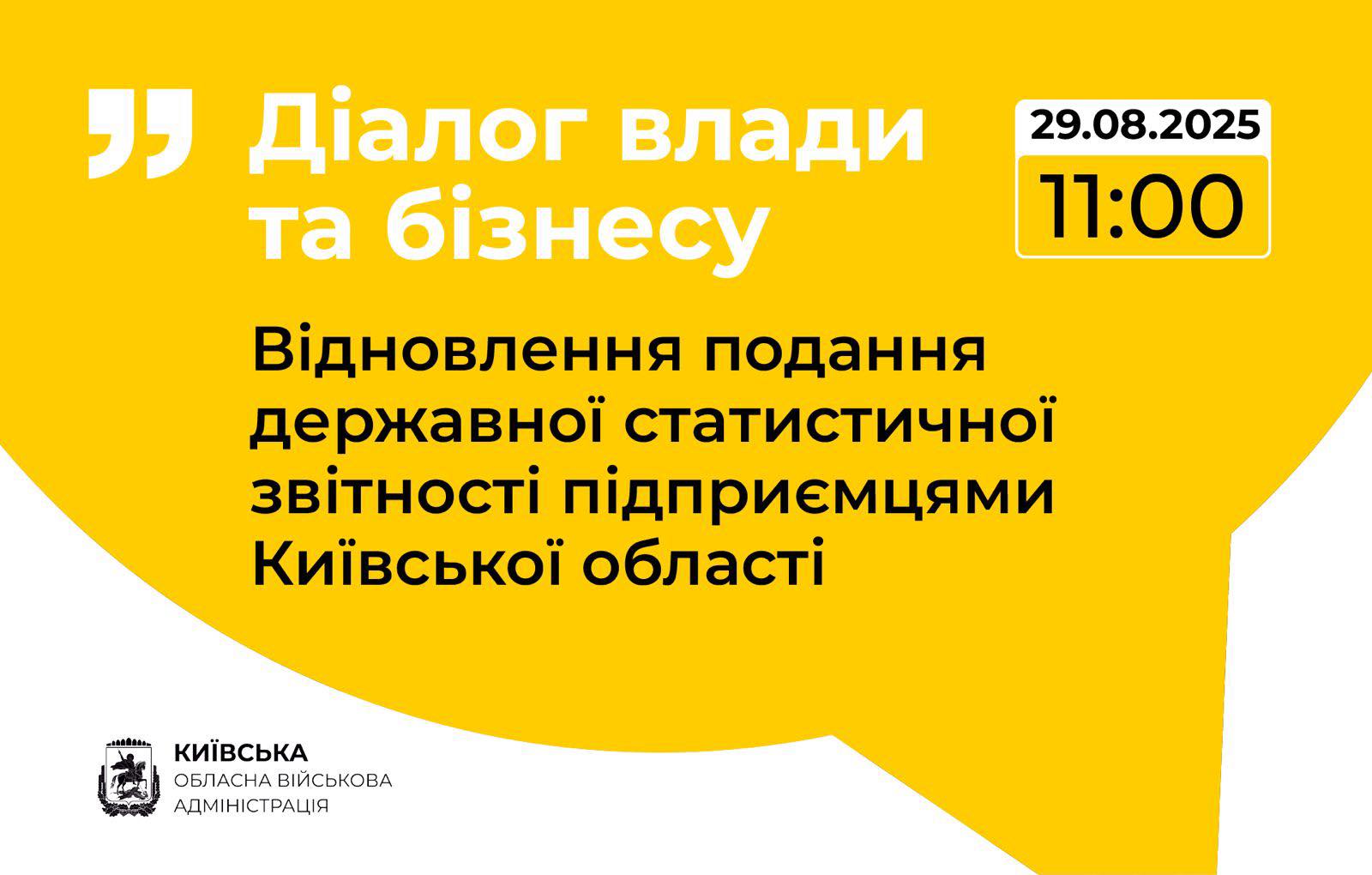 «Діалог влади та бізнесу»: Київська обласна державна адміністрація запрошує суб’єктів підприємницької діяльності Київської області до обговорення питань, пов’язаних із відновленням обов’язкового подання державної статистичної та фінансової звітності.