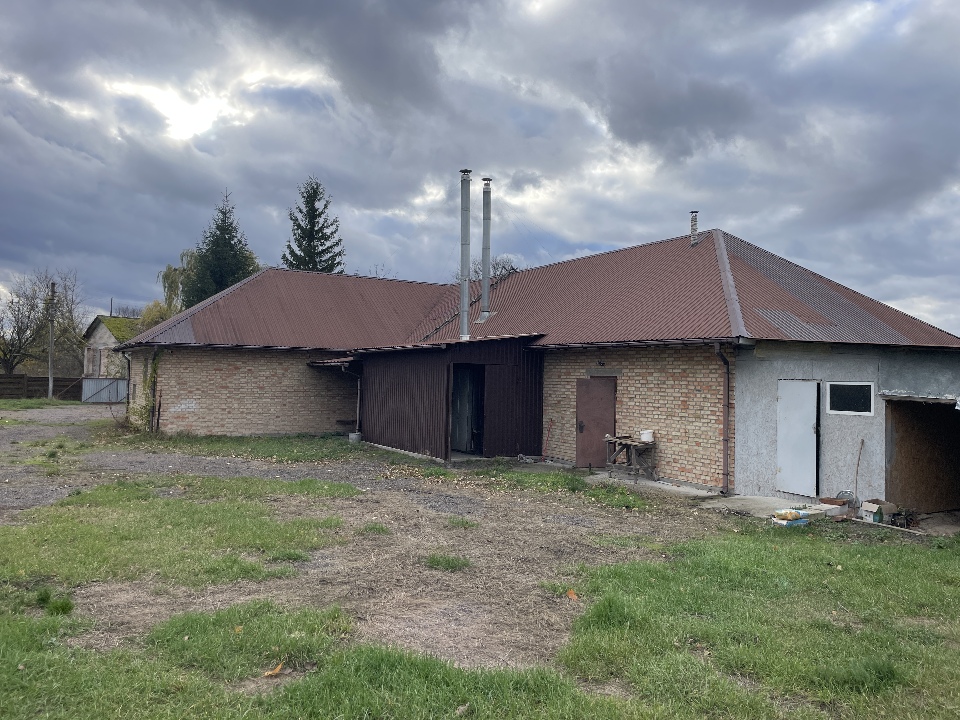 Технічні характеристики нерухомості: Відповідно до результатів технічної інвентаризації від 29.10.2025 р., фактична загальна площа будівлі становить 407,9 кв.м (у попередній документації від 06.11.2012 р. значилося 207,6 кв.м). Збільшення площі відбулося внаслідок реконструкції та зведення прибудованих приміщень. Будівля одноповерхова, включає 3 основних приміщення (111,7 кв.м, 156,3 кв.м, 39,7 кв.м), тамбур, коридор, санітарно-побутові вузли (душ, вбиральня) та 8 допоміжних приміщень різної площі. Конструктивні елементи: фундамент — бетон; стіни — цегла, газоблок, метал, ДСП; покрівля — металопрофіль; підлога — цементна стяжка, земля. Об’єкт підключено до мереж електро- та водопостачання. До складу лота також входять господарські споруди: сарай (7,5 кв.м) та огорожі.